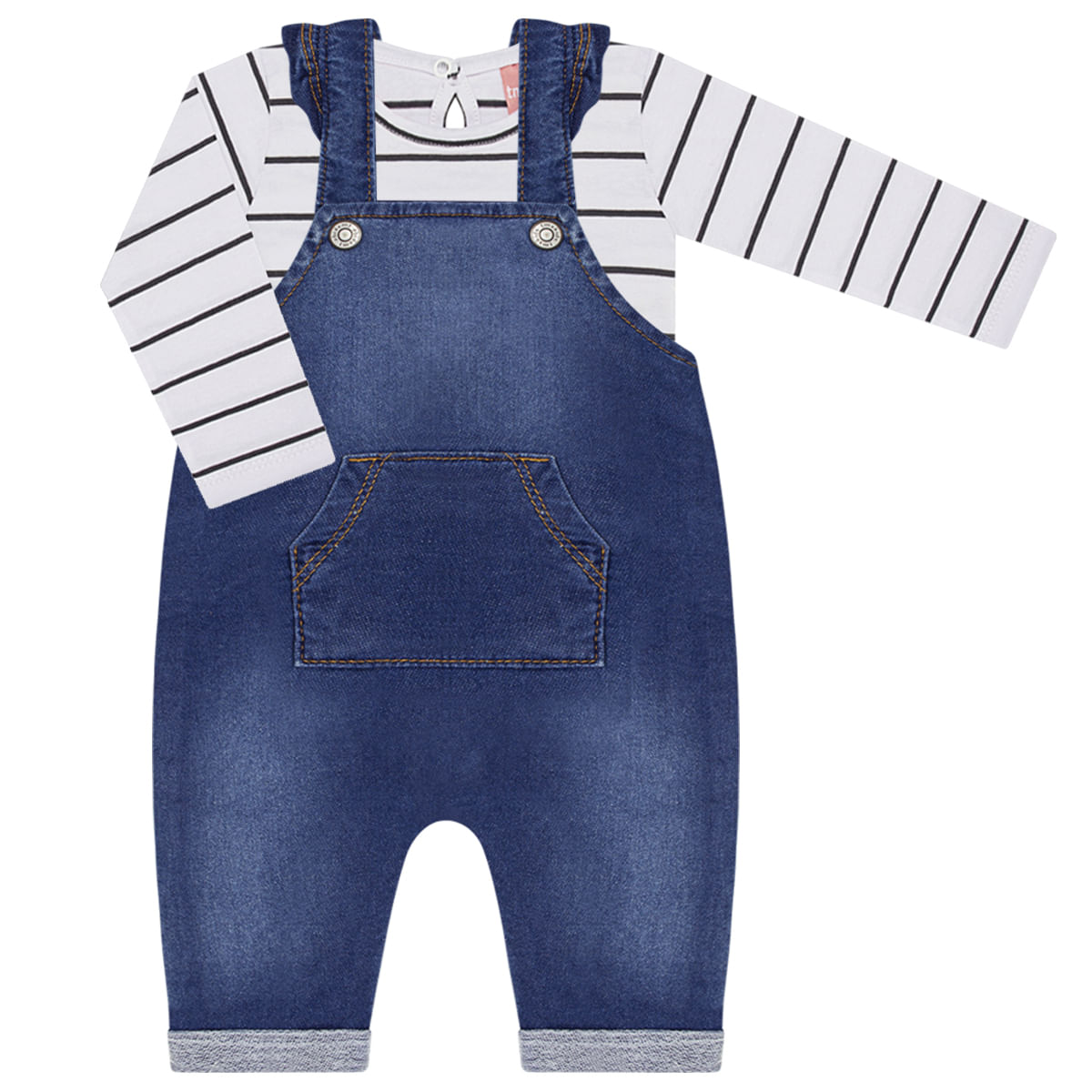 Conjunto Jardineira Jeans Bebe Tmx